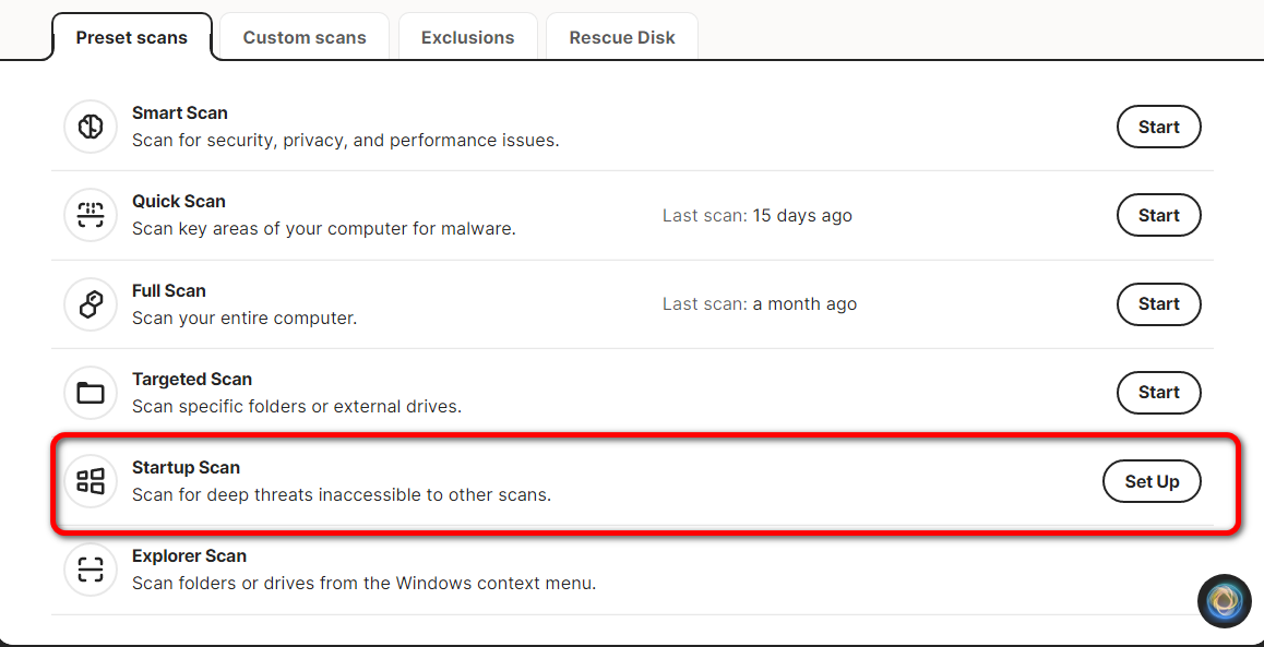 Run a Startup Scan