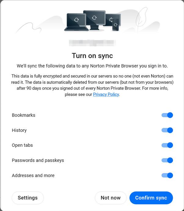 J’utilise “Norton Private Browser” sur deux ordinateurs (fixe et portable) est il possible de synchroniser les favoris ??