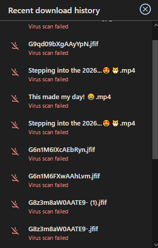 A few weeks ago I noticed that the virus scan for my downloads has started failing. Whenever I try to download a picture or video I always get the notice “Virus Scan Failed” and sometimes it will block the download and sometimes the download will go through. The scan always still seems to work for exe’s though. I did nothing to effect this. It just started acting this way on it’s own. I don’t know if this is a known issue, but any help to fix it would be greatly appreciated.