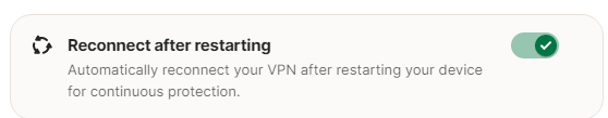 Once enabled, if the VPN was connected when you shut down your computer, it will automatically reconnect after you power it on again.