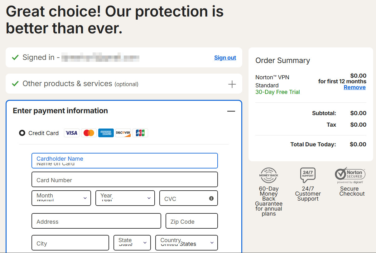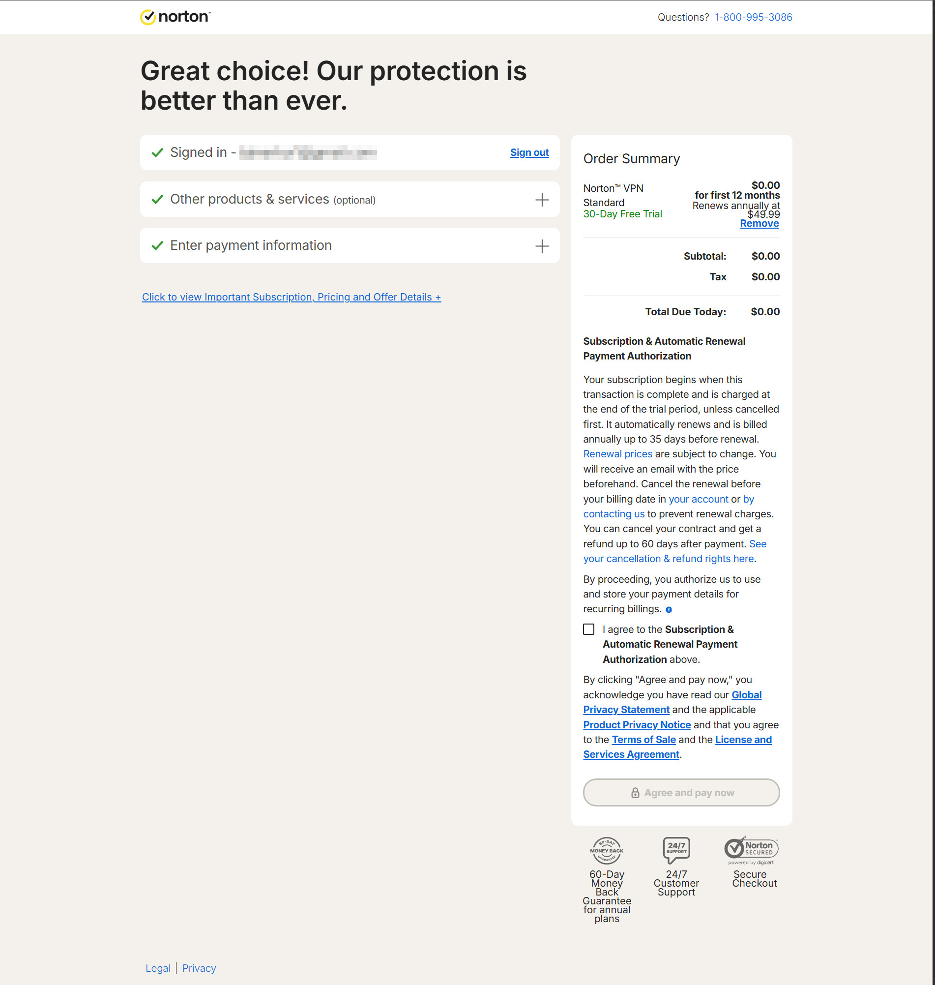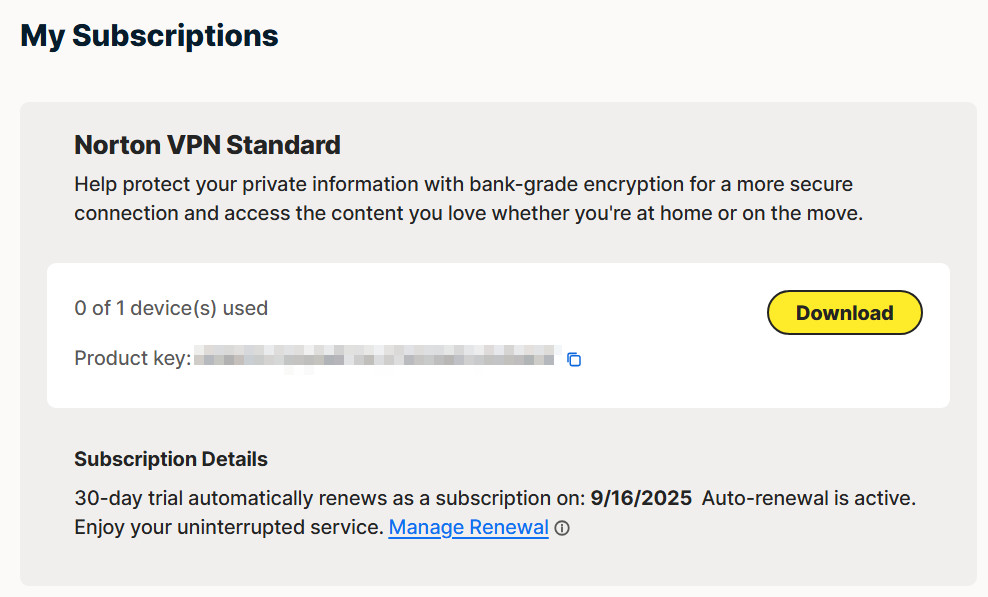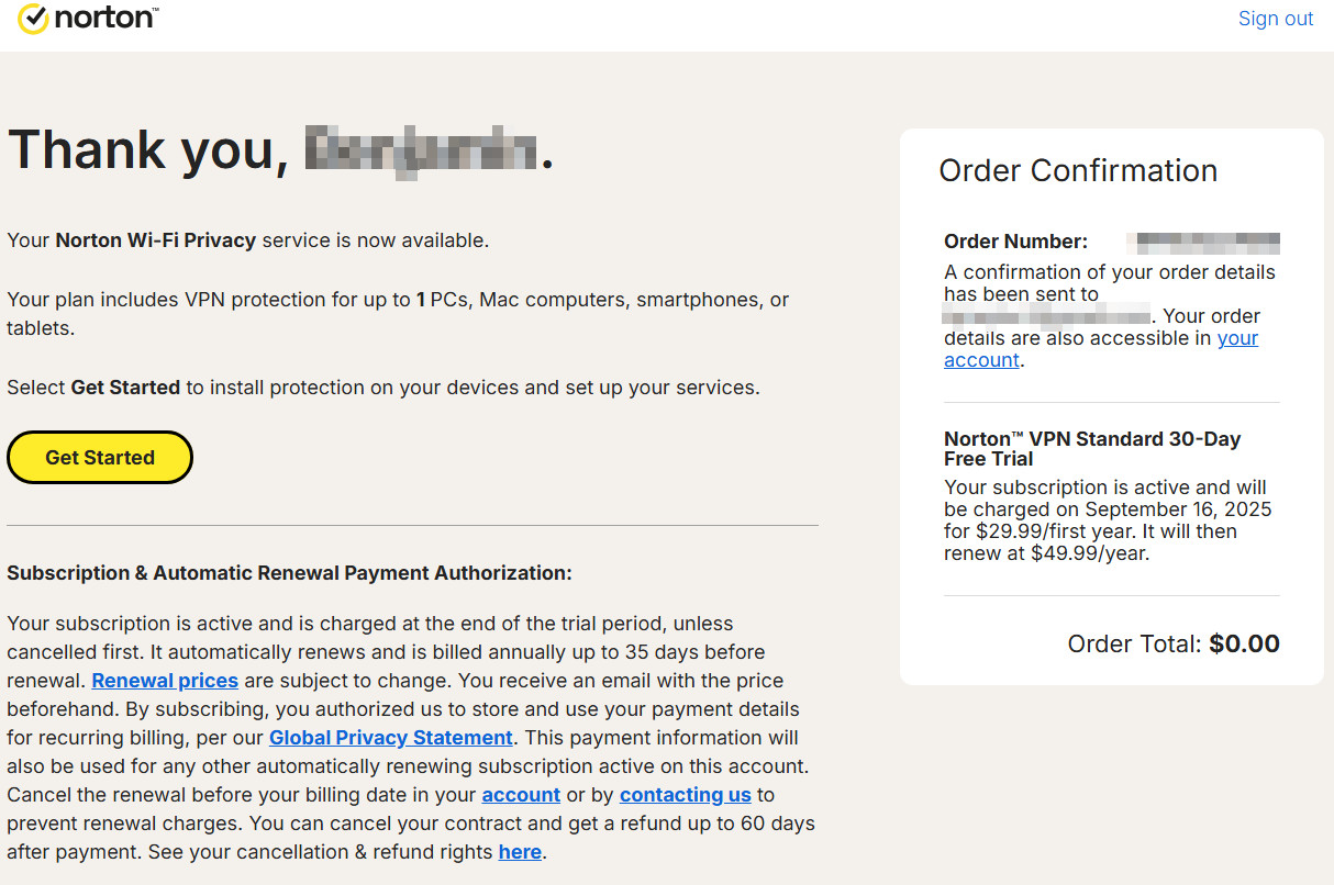 Um, appears Norton VPN picked up my Norton 360 subscription (# days)…because I’m signed in to my Norton account.