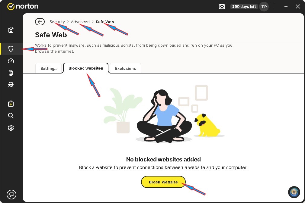@Ali-Bertarian Open your main Norton UI and find the settings in the below screenshot. You can add the website URL there.