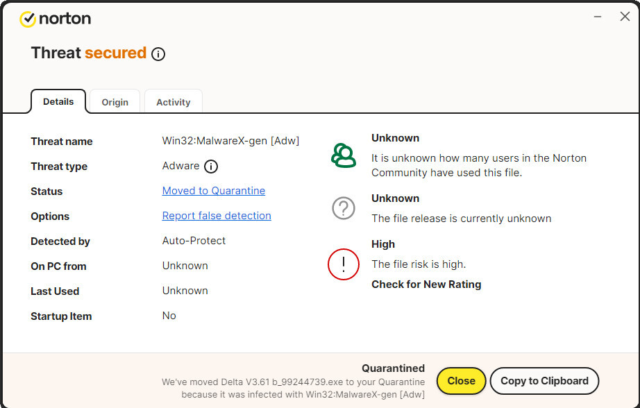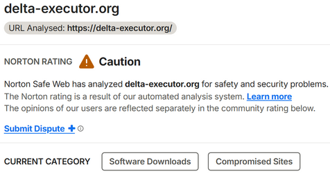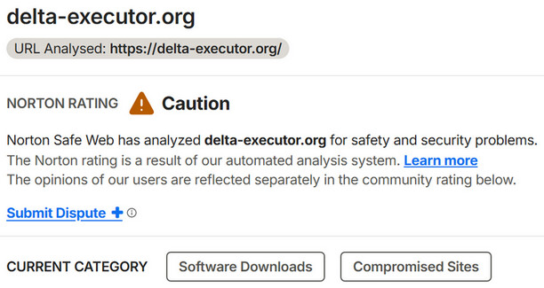 Curious, adding https://delta-executor.org/ to Norton 360 - Safe Web Exclusions renders