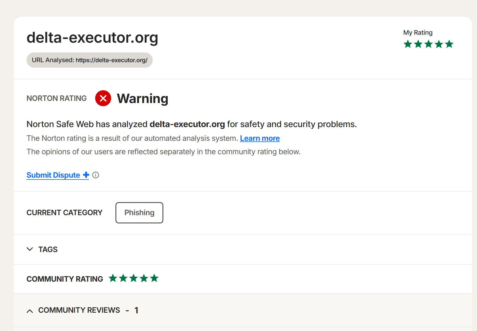 https://safeweb.norton.com/ → Submit Dispute = Dispute is already in progress.
