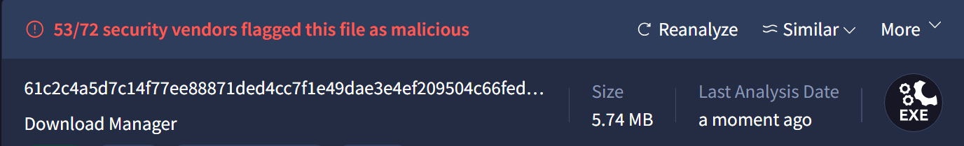 https://www.virustotal.com/gui/file/61c2c4a5d7c14f77ee88871ded4cc7f1e49dae3e4ef209504c66fedf4d22de42