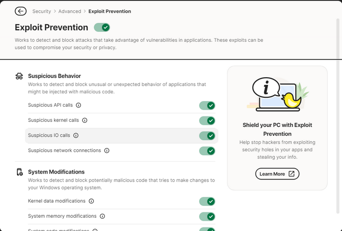Learn more about Exploit Prevention here